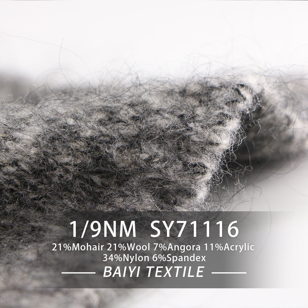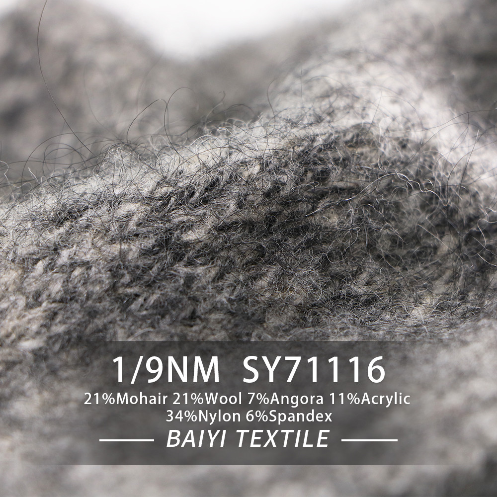 21٪ موهير 21٪ صوف 7٪ أنجورا 11٪ أكريليك 34٪ نايلون 6٪ سباندكس | ||